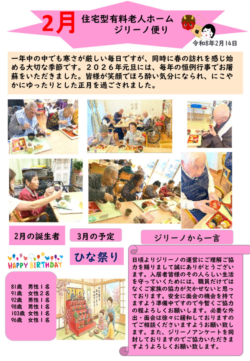 住宅型有料老人ホーム ジリーノ便り2026年2月
